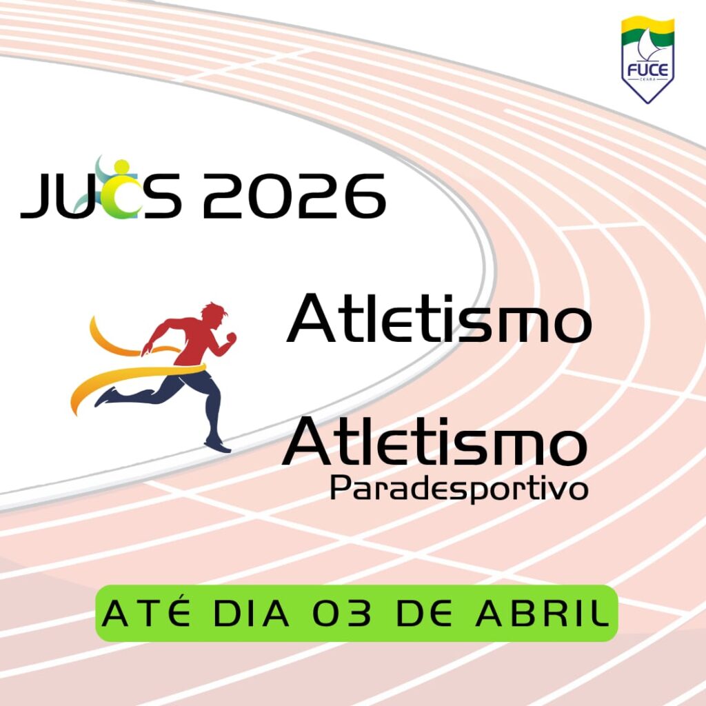 Data da publicação: 2 de abril de 2026 Categoria: 2026, JUCs, NotíciasOs Jogos Universitários Cearenses (JUCs), maior competição universitária do Estado, estão com inscrições abertas para a etapa de Atletismo, que será realizada nos dias 11 e 12 de abril no estádio da Universidade de Fortaleza (Unifor). As informações são da Federação Universitária Cearense de Esportes (Fuce), organizadora da competição. Estudantes-atletas das modalidades que queiram representar a Universidade Federal do Ceará têm até a sexta-feira (03) para se inscrever.