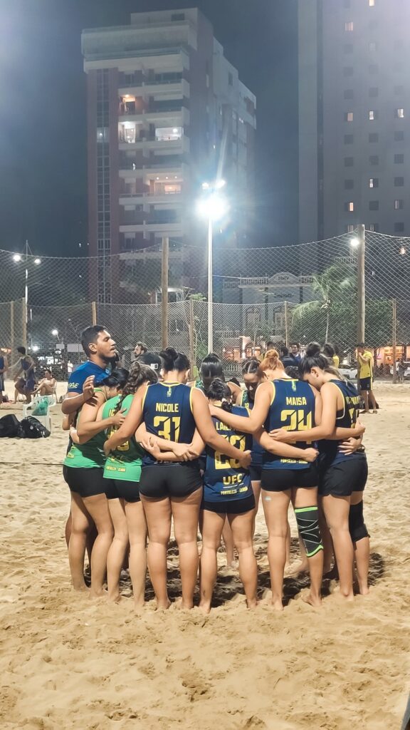 Praticando a versão de praia do handebol no Aterrinho da Praia de Iracema na noite de sexta-feira (27), as seleções da UFC levaram para as areias de Fortaleza a energia do beach hand, adaptação do handebol para solo arenoso. Com 4 jogadores por time com direito e especialista na defesa do gol, a modalidade tem características diferenciadas, como ponto simples, 2 pontos por marcação em giro de 360 graus e partida marcada por sets de 10 minutos.